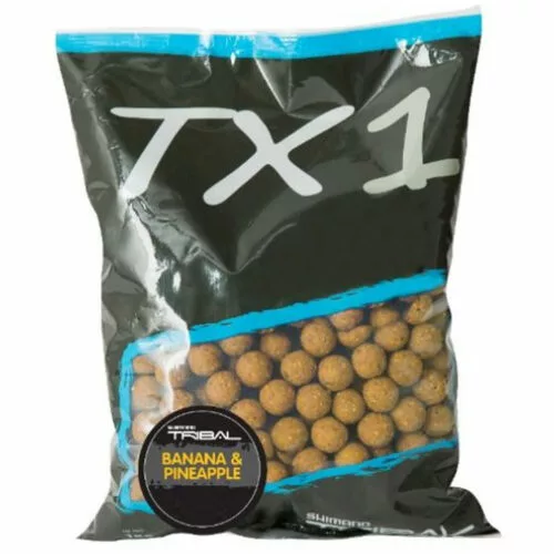 De TX1 van Shimano zijn vier verschillende topboilies met de smaken ‘Squid & Octopus’, ‘Strawberry’, ‘Banana & Pineapple’ en ‘Tigernut’. Door de open textuur van de boilie ontstaat er een hoge afgifte van de smaak waardoor de boilies een hoge aantrekkingskracht hebben. De boilies zijn verkrijgbaar in 15 mm en 20 mm. De zakken komen per kg en in een voordelige 5 kg verpakking. Daarnaast zijn er ook Pop-Ups leverbaar in alle smaken. Deze Pop-Ups zijn verkrijgbaar in 12 en 15 mm. Daarnaast is er ook Food Syrup beschikbaar in alle smaken.